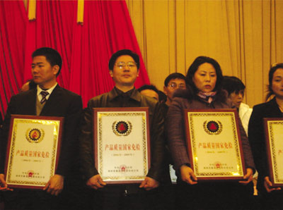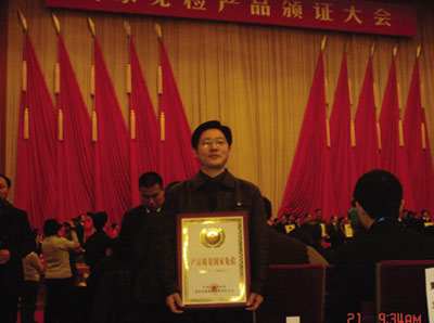 2006年公司獲得國家免檢產品稱號,作為江蘇省唯一獲得此殊榮的磚瓦機械廠家,該稱號的獲得不僅是政府對公司產品質量的認可,也是客戶對公司產品質量的信賴,更是對公司長期以來堅持“科技興企、質量先行”宗旨的理想回報。下圖是公司董事長崔恒全同志在北京人民大會堂領獎時的精彩瞬間。